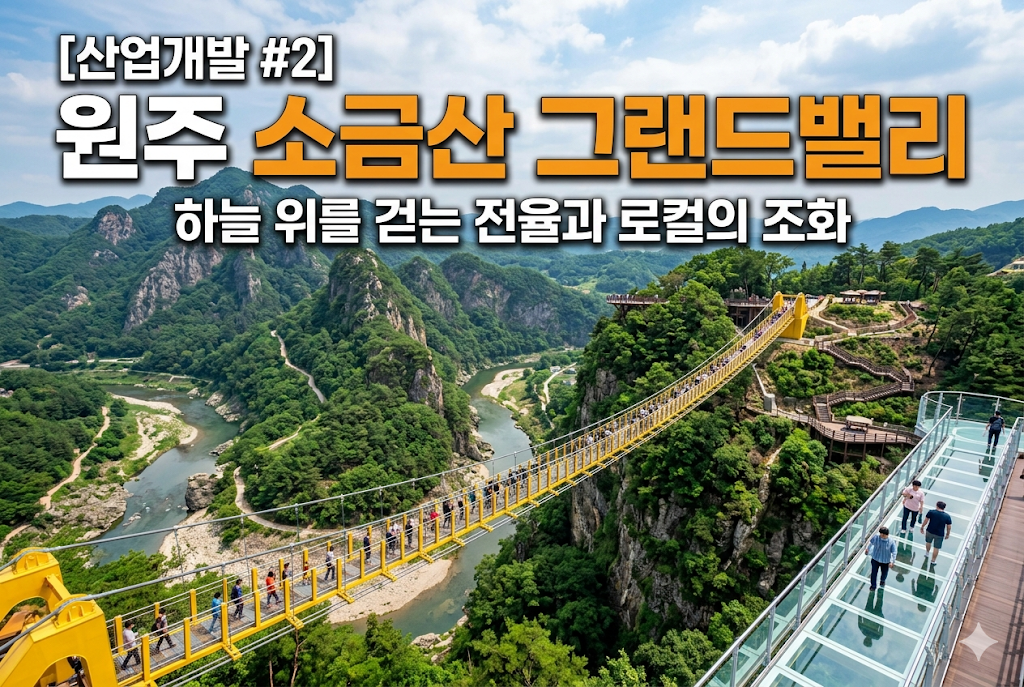 소금산 그랜드밸리는 단순한 출렁다리를 넘어, 울렁다리와 잔도 등 거대한 스케일의 액티비티가 결합된 대한민국 대표 '체험형 문화 관광'의 정점입니다. 지역 자원과 디지털 기술이 융합된 콘텐츠 전략을 통해 지속 가능한 발전 모델을 제안합니다.